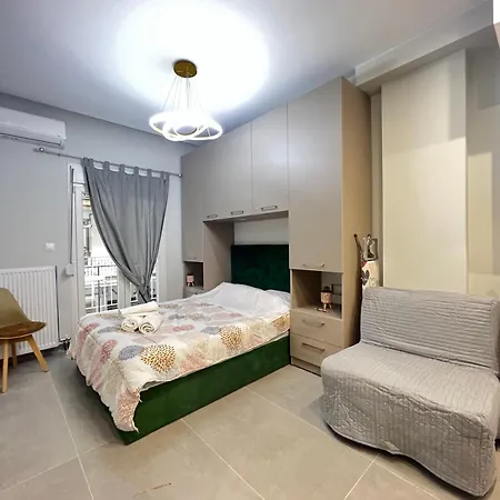 An equipped kitchenette with a refrigerator and an oven for self-catering purposes is also provided. This apartment is 0.6 km from Mousia bus stop and 2.7 km from Thessaloniki Central train station.